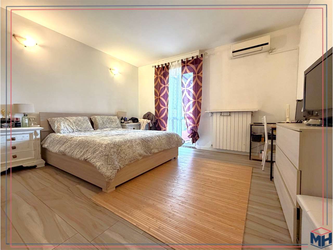 Nella zona notte troviamo un'ampia camera matrimoniale, anch'essa con accesso allo spazio esterno ed il bagno padronale dotato di box doccia.